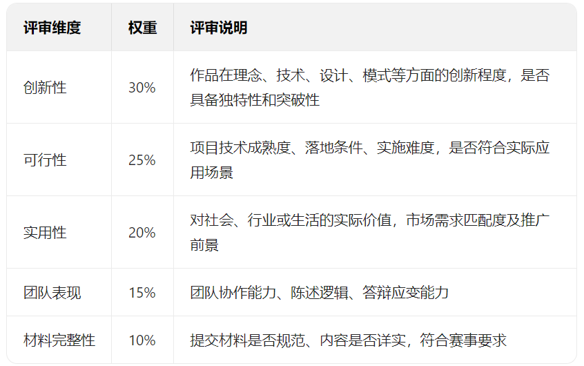 评分规则:评委根据项目陈述、答辩表现、创新性、可行性、市场潜力等维度综合打分,现场统计得分并公布获奖结果。